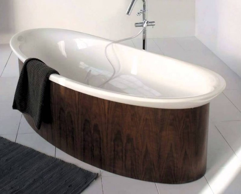 Даже самый красивый и стильный дизайн ванной комнаты потеряет свой лоск, если его центральный элемент – ванна будет выглядеть не эстетично. Внешняя нижняя часть любой емкости для мытья, исключая отдельностоящие модели, смотрится неопрятно и отталкивающе. Из-под нее выглядывают канализационные трубы и всевозможные бытовые мелочи, что отнюдь не украшает интерьер. Вам решать – каким образом закрыть это пространство и как придать данной зоне аккуратный и эстетичный вид. Проще и быстрее всего это сделать с помощью шторки или готового экрана с раздвижными дверцами из пластика, МДФ, металла или стекла. Однако, невысокая прочность подобных конструкций не позволяет надеяться на их длительную и надежную службу. В таких случаях можно соорудить экран для ванны своими руками из материалов, гармонирующих с остальной отделкой.