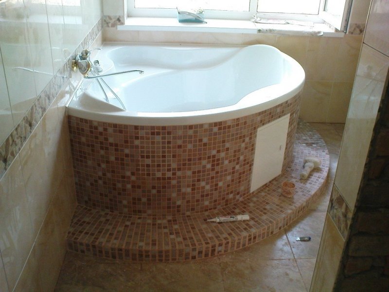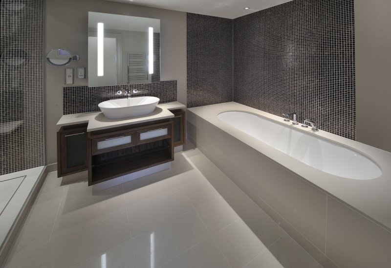- Это оптимальный вариант для оформления санузла, выглядит особенно роскошно при облицовке мозаикой.