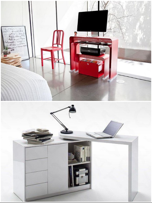 Узкая тумба-трансформер может заменить и спальню, и кабинет. | Фото: okoyogurt.com/ bazazakonov.ru.Существуют модели тумб-трансформеров, которые помогут не только организовать рабочий стол, но и спальное место. Благодаря такой «умной» мебели можно освободить минимум 3 кв.м. площади и это по самым скромным подсчетам.