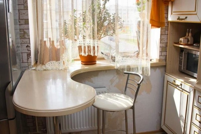 Большинство людей совсем не используют подоконники в квартире, считая, что они подходят исключительно для расстановки комнатных растений, книг или коллекции статуэток. На самом деле данный элемент можно использовать гораздо эффективнее, что особенно актуально для людей, в квартире которых маленькая кухня. Novate.ru собрал для вас несколько интересных идей, как использовать подоконник не по назначению и тем самым увеличить функциональность кухни.1. Дополнительная рабочая поверхность Рабочая зона включает подоконник. / Фото: sdelaimebel.ruОбычно, на маленькой кухне хватает места исключительно для размещения раковины, газовой плиты и еще одной тумбы, на которой проходит непосредственно сам процесс готовки. Даже для хозяйки, которая проводит в этой комнате минимальное количество времени, этой площади очень мало. Именно поэтому стоит рассмотреть подоконник, как дополнительное рабочее место. Все, что вам нужно, – это установить на всю его длину столешницу. Идеальными материалами станут гранит или мрамор, так как они являются наиболее крепкими, качественными, долговечными, устойчивыми к внешним негативным факторам, по типу влаги, жира, резких перепадов температур. Кроме того, каменная столешница с течением времени не меняет свой первоначальный внешний вид, не рассыхается и не разбухает. Также нельзя не упомянуть о ее красоте – подобный элемент сделает интерьер кухни стильным и изысканным.2. Барная стойка К барной стойке нужны высокие стулья. / Фото: Womoninred.ruВладельцам маленьких кухонь дизайнеры часто советуют обратить внимание на барную стойку. Она занимает мало места, но при этом является весьма стильной и функциональной. А если сделать ее из подоконника, то можно убить сразу двух зайцев одновременно: воплотить свою мечту о собственной стойке и сэкономить ценные квадратные метры. Если вам подоконник широкий и находится на приличной высоте от пола, считайте, что вы счастливчик. В этом случае единственное, что вам необходимо сделать – поставить возле новоявленной стойки несколько барных стульев, подходящих по высоте.Обратите внимание: Барную стойку можно использовать не только в качестве обеденной зоны или места для отдыха, где по утрам вы будете наслаждаться чашкой ароматного кофе, глядя на пейзаж за окном. Также она выступает прекрасным рабочим местом. Оборудуйте оконный проем несколькими полочками и шкафами для канцелярских принадлежностей, поставьте ноутбук и вуаля – уютный мини-офис готов.3. Обеденный стол Закругленный обеденный стол из подоконника. / Фото: Zen.yandex.ruЕсли вы живете в квартире один или со своей второй половинкой, вам может подойти вариант превращения подоконника в обеденный стол. Учтите тот факт, что в этом случае столешница должна выступать на за пределы стены, чтобы ноги не упирались в нее во время трапезы.Для больших семей подойдет другой оригинальный вариант. Нужно, чтобы столешница обеденного стола плавно перетекала в столешницу на подоконнике. Таким образом, вы объедините две функциональные зоны и увеличите количество посадочных мест.Самым компактным и удобным будет складной стол, расположенный под подоконником. Когда садитесь завтракать, обедать или ужинать, просто выдвигайте его и фиксируйте. А после трапезы снова складывайте и убирайте на место. Таким образом, вы обеспечите себе больше свободного про