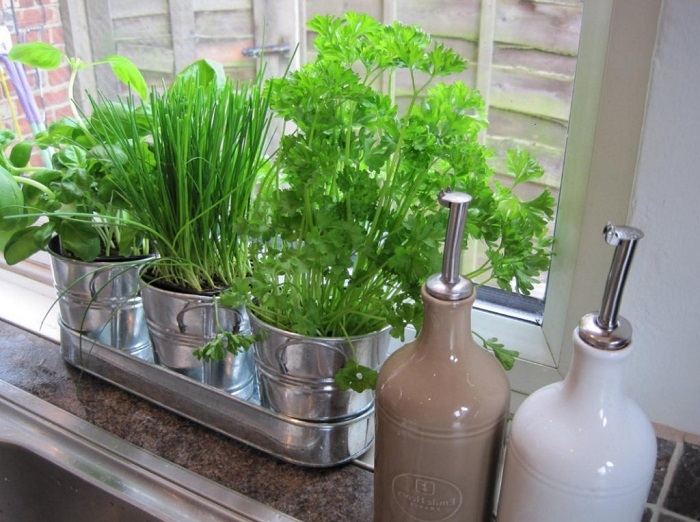 На подоконнике можно выращивать зелень. / Фото: Pinterest.ruС недавних пор подоконники перестали быть пристанищем исключительно для декоративных комнатных растений. Некоторые хозяйки предпочитают размещать там цветочные горшки, в которых растут пряности и съедобные экземпляры. Согласитесь, что гораздо экономнее выращивать свою зелень, чем тратить деньги на покупную (тем более, что зимой цены на нее возрастают в несколько раз).Это не так сложно, как кажется на первый взгляд. Чтобы вырастить съедобное растение, нужно взять три-четыре цветочных горшка, землю и семена растений. После того, как посадите их, обеспечьте регулярный полив и подходящую температуру. А обилие солнечного света подарит подоконник, на котором будут стоять растения. Через небольшой промежуток времени вы увидите первые плоды своей работы (в прямом смысле этого слова).
