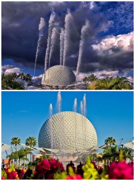 Фонтан Наций во Флориде находится в удивительном мире мультипликационных героев(США). | Фото: glavcom.ua/ fishki.net.Фонтан Наций (The Fountain of Nations) был открыт в 1982 году на территории тематического парка развлечений «Всемирного центра отдыха Уолта Диснея» (Walt Disney World Resort), в небольшом городке Лейк Буэна Виста (Штат Флорида, США). В день его открытия из разных уголков земного шара была привезена вода из самых крупных рек мира, которой символически и наполнили резервуар самого фонтана. Вот уже почти 40 лет струи воды «танцуют» под музыку из популярных диснеевских мультфильмов, олицетворяя мировую дружбу. Главную достопримечательность самого привлекательного парка страны создал инженер-дизайнер Марк Фуллер из компании WET, работавший над не менее впечатляющим фонтаном Белладжио, что в Лас-Вегасе.