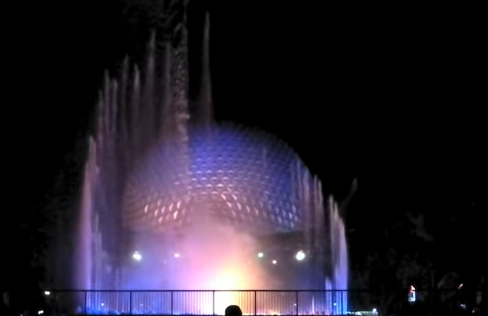 В темное время суток The Fountain of Nations подсвечивается разноцветными огнями (Флорида, США). | Фото: youtube.com/ Attractions Magazine.Его фантастическую работу обеспечивают 100 тыс. л. воды, 56 км электрических кабелей, огромное количество насосов и водонапорных систем, а также 300 сопел, выбрасывающих струи воды на высоту 50 м. Начиная с 2009 года, некоторые сопла подсвечиваются, создавая еще и невероятную цветовую картинку.