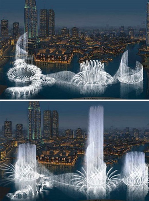 Как известно, на воду можно смотреть бесконечно, и неважно, будет это крошечный ручей, морской прибой или городской фонтан. Фонтаны сами по себе являются местом паломничества горожан, но бывают случаи, когда они превращаются в особенную достопримечательность, к которой устремляется нескончаемый поток туристов.1. Фонтан богатства в Сингапуре (Республика Сингапур) Фонтан богатства в Сингапуре – самый большой фонтан в мире. | Фото: mirputeshestvii.ru.Фонтан богатства (Fountain of Wealth), находящийся в центре города возле торгового центра Suntec City и неподалеку от Сингапурского колеса обозрения считается самым большим фонтаном мира. И это подтверждено записью в Книге рекордов Гиннеса за 1998 г. Помимо огромной площади он действительно вызывает восхищение и притягивает толпы местных жителей и туристов в жаркий летний день и по вечерам. Дошло уже до того, что пришлось устанавливать часы посещения достопримечательности из-за местных поверий. Ходят упорные слухи, слагаются целые легенды и придумываются ритуалы на привлечение денег, которые должны проводиться непосредственно в кругу центральной части ансамбля. И чтобы избежать столпотворения ввели график часов, когда можно провести обряд.Ну а если серьезно, то это грандиозное сооружение построено по всем правилам фэн-шуй с наделением каждой детали глубокого смысла. Так, например, бронзовое кольцо внутри фонтана по канонам индуистских верований олицетворяет Вселенную, что превозносит полное равенство, духовное единство и гармонию взаимоотношений всех наций Сингапура. 2. Радужный мост-фонтан «Банпо» в Сеуле (Южная Корея) Фонтан «Банпо» не просто фонтан – это мост из воды всех цветов радуги. | Фото: ggneznakomka.livejournal.com/ yandex.ru.Это еще один фонтан-рекордсмен только попал он Книгу рекордов Гиннеса из-за своей длины. Он больше похож на настоящий мост из воды протяженностью 1140 м, причем каждый участок имеет свою цветовую палитру. Таким образом получается восхитительное зрелище – грандиозный водный мост всех цветов радуги. Чтобы создать такое цветовое представление понадобилось установить более 10 тыс. мощных светодиодных ламп, так что свое название «радуга под лунным светом» он вполне оправдывает. За 1 минуту 380 «носиков» выпускает около 190 т. воды (фонтан «Банпо», Сеул). | Фото: alfa-industry.ru/ pinterest.co.uk.Примечательно, что струи воды в фонтане «Банпо» направлены не вверх как у большинства подобных сооружений, а в стороны и вниз. Причем для обеспечения непрерывного потока ежеминутно расходуется 190 т. воды, которая подкачивается из близ лежащей реки. Чтобы не нарушать баланс в природе система водоснабжения сделана так, что использованный водный массив отправляется снова в реку. Но и это не все сюрпризы для горожан и путешествующих, как правило, вечерами помимо подсветки устраивают «танец воды» под звучание различных мелодий, которых в арсенале достопримечательности более 100. 3. Фонтан Дубай в Дубаи (ОАЭ) Самый фантастический фонтан Дубаи открылся в 2009 г. и обошелся устроителям 218 млн дол. (ОАЭ). | Фото: ksenia-ksenianikolaeva.blogspot.com.Никто не сомневается, что Дубаи может кому-то уступить в номинации «самый-самый». Так, например, фонтан Дубай, открывшийся на искусственном озере Бурдж-Халифа (площадь 12 га!), уже признан одним из самых больших и высоких фонтанов среди сооружений подобного типа. Его высота достигает 150 м, а длина – 275 м. Струи 