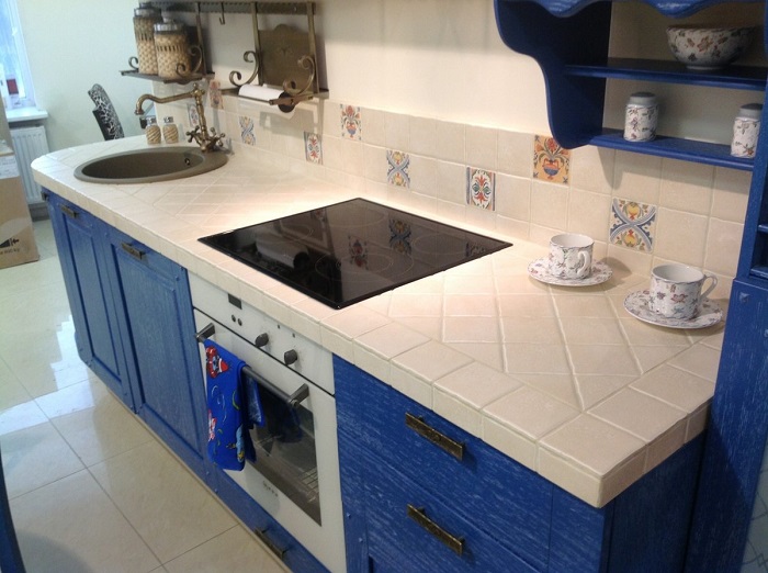 Плитка преобразит внешний вид столешницы. / Фото: Informbuilding.ruОдним из самых важных элементов на кухне является столешница. Именно она «задает тон» всей обстановке. К сожалению, этот элемент быстрее всего выходит из строя, так как ежедневно подвергается нешуточной нагрузке. Экземпляры из натурального камня, например, гранита или мрамора, служат дольше, так как являются более устойчивыми к негативным внешним факторам: влаге, перепадам температуры и так далее. А вот деревянные столешницы не могут похвастаться долговечностью.В любом случае, из какого бы материала не была сделана ваша рабочая поверхность, если она пришла в негодность, не обязательно ее менять. Можно пойти более простым и выгодным путем – облицевать столешницу плиткой или мозаику. Да, это не совсем бюджетно, однако сам процесс достаточно быстрый. К тому же, плитку можно купить самую обычную, а не брендовую. Спросите у консультантов, возможно в магазине остались остатки, которые сейчас продают по акции. Можете даже взять разные по цвету экземпляры. Главное, чтобы они гармонично сочетались.