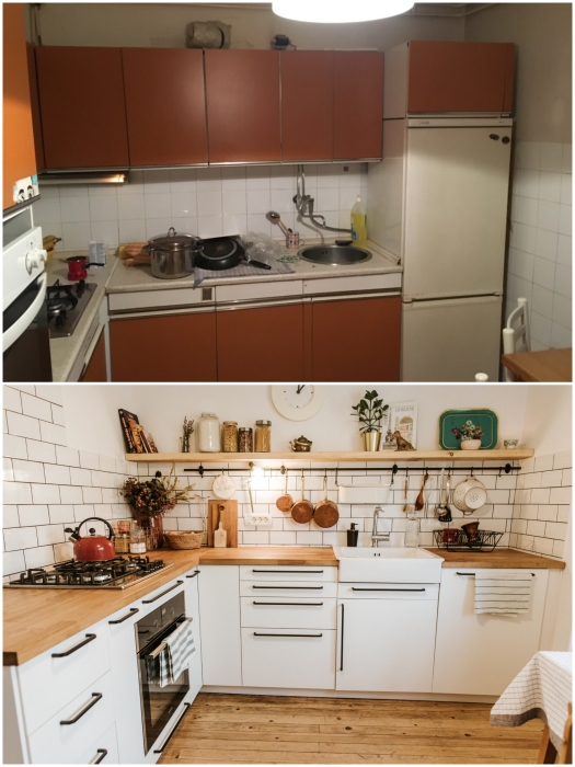 Преображать старое жилище всегда очень сложно, ведь в нем не только устарела мебель и вся отделка, в большинстве случаев приходится менять все, начиная от оконных рам и заканчивая коммуникациями. Но когда появляется возможность выбраться из съемного жилья, большинство с радостью соглашается на любые условия, лишь бы иметь собственную крышу над головой. Как это сделала супружеская пара из Любляны, решившаяся на покупку квартиры в старом здании с неприглядным интерьером. Молодая супружеская пара из Любляны решилась на покупку старой квартиры, чтобы превратить ее в стильное комфортное жилье. | Фото: odprtakuhinja.delo.si.Ранее молодая супружеская пара Нина Шема и Ян Яворник жили в квартире-студии, которую они снимали в одном из районов Любляны (Словения). Естественно, когда появилась возможность приобретения собственного жилья, они ею воспользовались не задумываясь, даже несмотря на то, что квартира имела потрепанный интерьер, требующий полной реорганизации и находилась она в старом доме. Такой вид кухни новоиспеченных владельцев совсем не устраивал. | Фото: odprtakuhinja.delo.si/ dominvrt.si.Как стало известно авторам Novate.Ru, дом был построен в сороковых годах прошлого века, а сама 3-комнатная квартира видела ремонт лет 30-40 назад. Но несмотря на это, молодым людям она очень понравилась, ведь в ней были большие и светлые комнаты. А привести их в надлежащий вид можно и самим и сделать это по своему вкусу. Ремонт решили начать с полной заменой коммуникаций и проводки на кухне. | Фото: lemurov.net.Особенно радовал ребят тот факт, что они смогут реализовать свою мечту и самостоятельно создать дизайн квартиры в скандинавском стиле, ведь помещение это позволяло сделать. Творческая натура Нины всегда требовала реализации, еще проживая на съемной квартире она начала собирать интересные предметы кухонной утвари и всевозможные милые безделицы, которые теперь можно будет использовать при обустройстве собственного жилья. А Яна всегда привлекали оригинальные идеи, которые можно воплотить в жизнь собственными руками. Милые вещицы для своей будущей кухни Нина начала покупать задолго до приобретения квартиры. | Фото: instagram.com/ © hudalukna.Чтобы все свободное можно было посвящать ремонту, молодые люди жили в этой квартире. Спали на обычном матрасе на полу, перемещая его в ту комнату, которая была более чище, ведь старую мебель вынесли на балкон, чтобы не мешала работе. Поскольку кухня требовала первостепенного внимания молодые люди принялись за ее обустройство. До тех пор, пока длился ремонт на кухне, им приходилось готовить на примитивной печке, которую обычно используют для отдыха на природе. Стену возле рабочей зоны облицевали белой глянцевой плиткой, швы которой сделали решили сделать контрастными. | Фото: odprtakuhinja.delo.si/ dominvrt.si.Для начала пришлось убрать всю мебель, которую они предусмотрительно не выбросили, а вынесли на балкон, чтобы привести ее со временем в порядок. Поскольку кафель и стены были не в лучшем виде оббили штукатурку и облицовочную плитку, заодно провели новые коммуникации и электропроводку. Угрюмые навесные шкафы заменили одной открытой полкой из массива натурального дерева. | Фото: instagram.com/ © hudalukna.С последним вопросом пришлось обращаться к специалистам, хотя со всем остальным прекрасно справлялись сами, правда иногда ребятам помогали друзья и родители. Несм