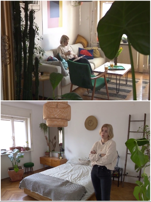 Нине удалось создать интерьер, в котором гармонично сочетается старая мебель и современный дизайн. | Фото: dominvrt.si.Единственное для чего не жалеет ни места, ни времени молодая хозяйка, так это для живых цветов, которыми украшена вся квартира. Также ни в чем не отказывают домашнему любимцу Сабу, который может занять не только любимое кресло, но и развалиться на хозяйской кровати и белоснежному коту.