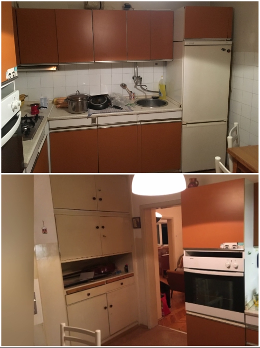 Такой вид кухни новоиспеченных владельцев совсем не устраивал. | Фото: odprtakuhinja.delo.si/ dominvrt.si.Как стало известно авторам Novate.Ru, дом был построен в сороковых годах прошлого века, а сама 3-комнатная квартира видела ремонт лет 30-40 назад. Но несмотря на это, молодым людям она очень понравилась, ведь в ней были большие и светлые комнаты. А привести их в надлежащий вид можно и самим и сделать это по своему вкусу.