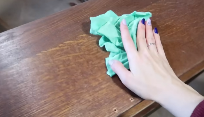 Перед вскрытием грунтовкой все детали секретера нужно протереть влажной тряпкой. | Фото: youtube.com/© Bubenitta.
