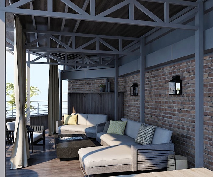 Для отделки стен идеально подойдет кирпич. / Фото: m-strana.ruИндустриальный стиль не терпит мелких аксессуаров и безделушек. Лучше использовать пару выразительных объектов: дорогую вазу, полотно в стиле поп-прт, изысканную статуэтку, большое зеркало без рамы. Исторически лофт предполагает наличие камина, поэтому если у вас есть возможность оформить винтажный или современный экземпляр, обязательно воспользуйтесь им. Если вы не представляете веранду без цветов, используйте в качестве кашпо цинковые ведра. Веранда в стиле лофт – это ваша художественная мастерская, авторская галерея, в которой любая вещь может стать источником вдохновения и превратиться в оригинальную деталь интерьера.
