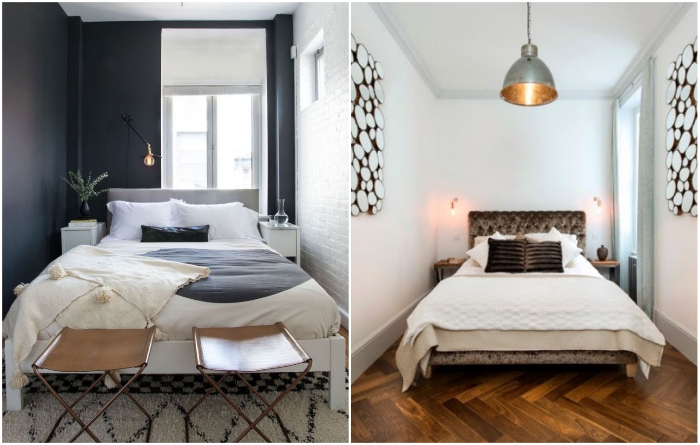 Узкие спальни лучше оформлять в контрастных тонах или добавить ярко выраженный акцент. | Фото: dizajngid.ru/ modernplace.ru.Узкие длинные спальни, больше похожие на трамвайный вагон нежели на жилую комнату, – настоящий бич советской планировки. Как ни крути, ни мебель поставить, ни развернуться толком не получается. Но и в этом случае можно найти несколько интересных дизайнерских задумок.