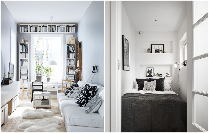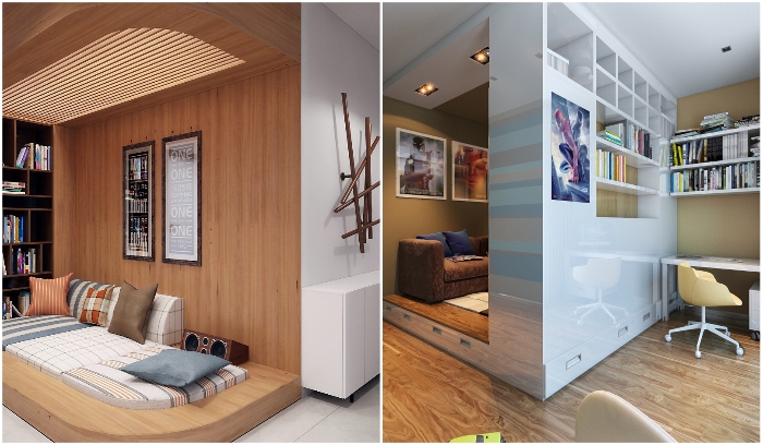 Подобные ухищрения позволяют значительно сэкономить пространство без ущерба для функциональности. | Фото: roomble.com/ pinterest.com.Хотя и в этом случае без ложки дегтя не обходится. Авторы Novate.ru напоминают, что в погоне за компактностью не стоит переходить межу, ведь диван, стол или стул должны быть настолько «крошечными», насколько это возможно, но при этом не ограничивать комфорт и удобство использования. Также нужно учитывать, что все раздвижные системы при постоянном складывании-раскладывании подвергаются большой нагрузке, поэтому при покупке трансформирующейся мебели следует обратить особое внимание на качество этих элементов.