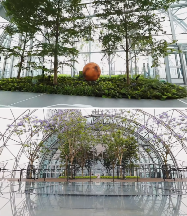 Ультраскоростной лифт доставит гостей к интерактивной экспозиции, которая раскроет планы Китая на освоение Марса («Crystal»). | Фото: youtube.com/ © CapitaLand.Подъем на вершину экспресс-лифтом займет лишь 50 секунд и перед взором посетителей откроется еще одна выставка, которая представляет амбициозные планы Китая на покорение Марса и организации жизни на нем. Но даже после ознакомления с космической программой вы не сможете попасть на самую масштабную обзорную площадку, которая предложит всем отчаянным проверить силу духа на открытых террасах с полностью прозрачным полом.