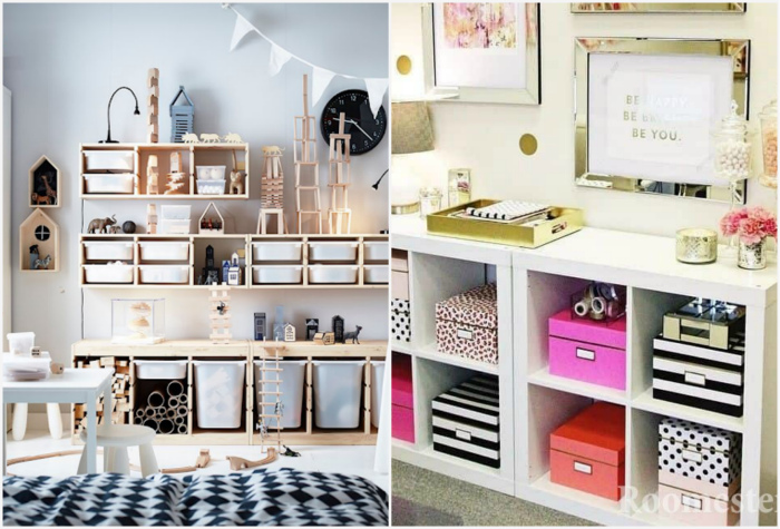 Распихивать все по коробкам. | Фото: HappyModern.RU, freshshe.ru.По мнению Novate.ru, декоративные коробки для хранения выглядят довольно привлекательно, если не переборщить. Иногда рационалисты и любители порядка слишком увлекаются симпатичными коробочками, в которых не скапливается пыль, и превращают свой дом в склад. Специалисты рекомендуют чередовать коробки с вещами, стоящими в открытом доступе. В противном случае вы получите монотонный и унылый интерьер, который со временем начнет раздражать.