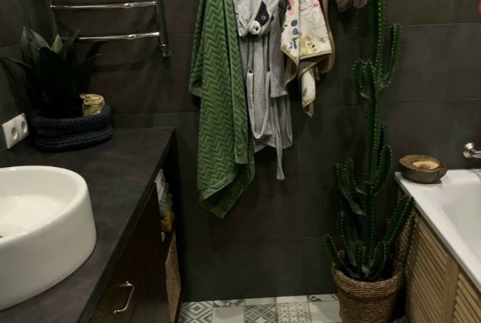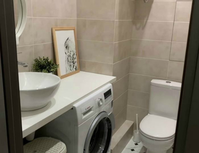 Ценные советы по обустройству крошечной ванны.Ванная комната - это особая часть жилища, из которой многие из нас стараются сделать настоящую конфетку. Но для многих людей непреодолимым препятствием к мечте становится маленькая площадь санузла. Но даже те несчастные квадратные метры, которые «щедрой рукой» выделили большинству из нас советские архитекторы, можно сделать вполне привлекательными. Подробнее об этом - далее в обзоре.1. Сочетание фактур Сочетание разных фактур в интерьере маленького санузла. | Фото: Лаборатория дизайна интерьера.Часто владельцы маленьких ванных комнат вообще не заморачиваются с интерьером, останавливаясь на самой простой керамической плитке. Однако не нужно преждевременно ставить крест на своем маленьком санузле. Дизайнеры уверяют, любое помещение можно сделать интересным, используя разнообразные фактуры и грамотное освещение. Яркий тому пример - ванная комната на фото. В ней удалось «подружить» керамическую плитку с узором, холодный бетон и доски. Ну, а завершает картинку - разнообразное и многоуровневое освещение.2. Изменение границ Ванная комната с необычными границами. | Фото: Моя Ванна.Маленькие санузлы - это фишка типовых построек 60-80-х годов. Однако скромный размер - не приговор. С помощью современных материалов и технологий можно самостоятельно скорректировать границы пространства. Взгляните, как оригинально и функционально дизайнеры обустроили эту ванную комнату, разместив в углу джакузи, обшивка которой плавно «перетекает» в шкафчик под мойкой и вплотную прилегает к стене. Остальные предметы обстановки имеют минималистичный дизайн, в таком же стиле подобрана и отделка.3. Функциональные решения Унитаз-биде в маленьком санузле. | Фото: HappyModern.RU.Маленькая ванная комната - не повод отказываться от комфорта. Далеко не в каждом санузле найдется место для установки отдельного биде, но современная промышленность делает невозможное возможным. К примеру, на фото стандартный санузел в пятиэтажном доме с унитазом-биде. Смеситель биде установили в экран ванны.4. Искусственные растения Искусственные растения в интерьере ванны. | Фото: Инросстрой.Проблемой многих ванных комнат является отсутствие уюта. В этом нет ничего удивительного, ведь влажная среда и отсутствие света - не самые благоприятные условия для живых растений, картин и деревянной мебели. Однако, если вы твердо решили, что в вашем санузле должны быть растения, выбирайте искусственные. Несмотря на то, что дизайнеры плохо относятся к этому украшению, в ванной комнате - можно! Только постарайтесь выбрать те, что максимально похожи на настоящие, и приготовьтесь к тому, что время от времени их придется менять.5. Стильная машинка Стиральная машинка под столешницей. | Фото: Труд.На фото - прекрасный пример того, где и как можно разместить стиральную машинку. Дизайнеры убрали верхнюю крышку и установили машинку под столешницей. Если отдать предпочтение накладной раковине с компактным сифоном, рядом со стиральной машинкой еще останется место для вместительной корзины для белья.6. Шторка Шкафчик со шторкой. | Фото: Пуфик.По мнению Novate.ru, сделать интерьер ванны уютней помогут шторки, но не те, что вешают на окна. Взгляните на фото, в этом интерьере дизайнеры заменили дверцы шкафчика на плотные синие шторки. Такое решение выглядит очень свежо и ую