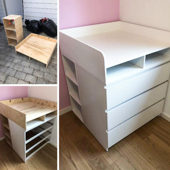 Гениальное просто! / Фото: reddit.com/user/DrSmusОдин датчанин так сильно любил полки и тумбы от IKEA, что стал превращать их в другие, более фундаментальные вещи. Как оказалось, из простых сборных полок можно без труда создать пеленальный столик для младенца, потому что в IKEA любят соблюдать стандарты размеров, а поэтому... всё всему соответствует! Ну просто Lego!