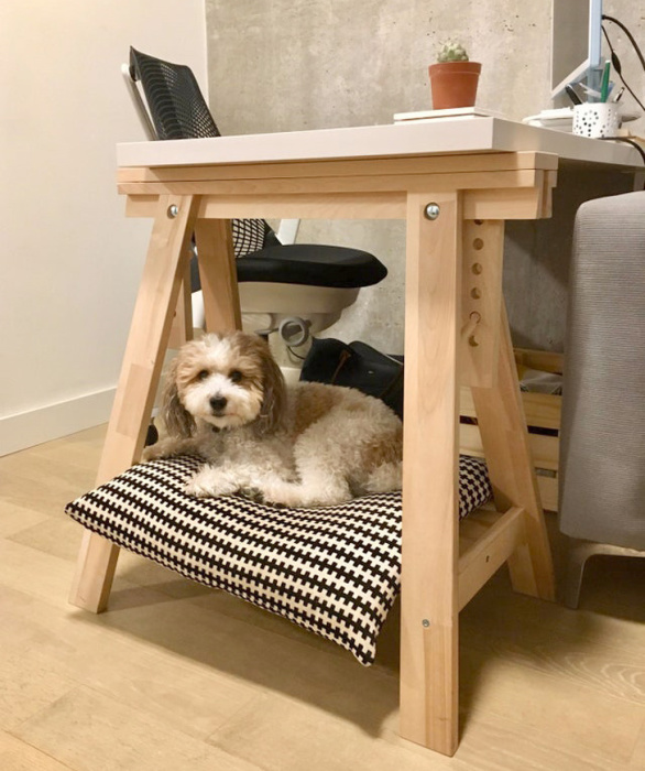 Это просто гениально! / Фото: reddit.com/user/onward22У многих раскладных письменных столов для школьников и взрослых снизу есть основание, которое образует своеобразный остов для будущей кроватки для вашего кота или собаки. Если остов не Х-образный, то достаточно просто положить одну добавочную доску или фрагмент фанеры. Это может быть даже плотная крышка от большой коробки из-под обуви. Идея проста и гениальна. Собаки и коты обожают все новое, а так же быть поближе к хозяину, так что если они увидят новую лежаночку там, то придут на неё и надолго там задержатся.