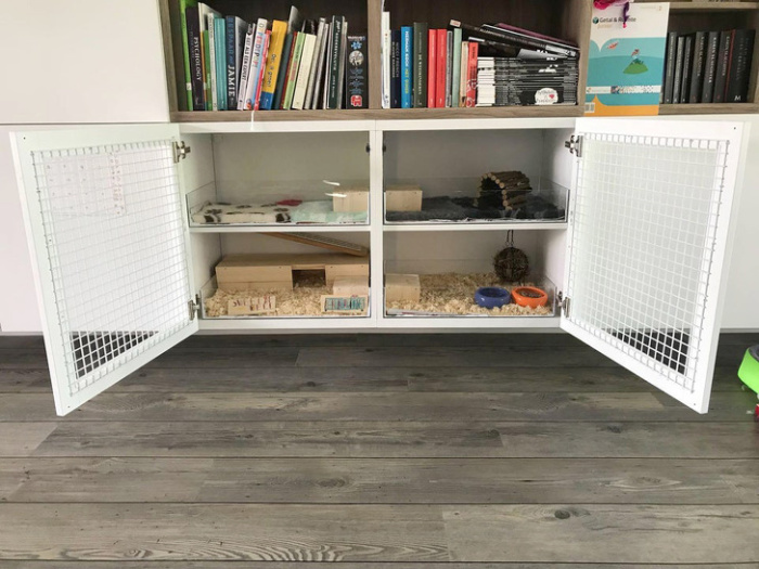 Животинке тут так просторно! / Фото: reddit.com/user/blind_tonyЕсли у вас живет питомец-грызун, такой, как шиншилла, морская свинка, крыса или кролик, то им нужно много места. Если селить животное в аквариуме из стекла, то весит он тонну и требует специального места для размещения, если покупать большую клетку, то она стоит очень дорого. Куда проще вмонтировать жилище для грызуна в уже имеющуюся тумбу. Просто идеально!Тему годного интерьера на Novate.Ru продолжит материал новные ошибки при ремонте в ванной комнате: советы бывалых ремонтников.