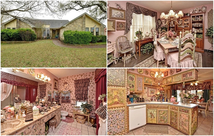 Несмотря на известное утверждение, что «о вкусах не спорят», бывают ситуации, когда даже большие поклонники всего зефирно-розового впадают в ступор от чрезмерного изобилия рюшей и бантиков. Именно такой странный во всех отношениях интерьер сейчас активно обсуждается на просторах интернета. Так, в Техасе выставлен на продажу обычный с виду дом, который и произвел настоящий всплеск эмоций. Что же так взбудоражило пользователей Сети? В Техасе обычный с виду дом наповал сразил откровенно странным интерьером. | Фото: awesomeinventions.com/ pro-remont.mediasalt.ru.Объявления о продаже недвижимости на страницах огромного количества интернет-площадок - настолько обыденное дело, что мало кто из незаинтересованных лиц обращает на них внимание. Но одно объявление вызвало настоящую бурю обсуждений пользователей Сети, которые никогда даже и не интересовались недвижимостью. Давайте разберемся, чем «прославился» ничем непримечательный на первый взгляд дом в Лейжервудсе, штат Техас. Вычурная гостиная вряд ли сможет вместить много гостей – все заполонили подушки, декор и цветы. | Фото: awesomeinventions.com.Внимание людей, которые ищут недвижимость, не могло не привлечь объявление со странной припиской: «На участке имеется древнее захоронение (перед домом)». Естественно любопытный народ не преминул заглянуть на страничку и пролистать выставленные фотографии, которые еще больше загнали в угол, ведь такого поворота уж точно никто не ожидал. Ну как обойтись в столовой без ламбрекенов, рюшей, оборок и обилия цветов? | Фото: awesomeinventions.com.Описание соответствовало фотографиям, и фасад дома вполне привычный для этих мест, и ухоженный двор с бассейном в глубине участка, и отдельный гараж, и большой плодоносящий сад. Но «переступив порог» все сразу же начинали понимать, что значили слова в объявлении: «Единственный в своем роде художественный дом, с множеством замечательных особенностей». Вторую гостиную оформляли с меньшим рвением, но без цветов все равно не обошлось. | Фото: lokmat.com.Даже романтическим натурам, которые обожествляют розовые тона, цветочки, ленточки, рюши и бантики, интерьер показался чрезмерно «зефирным» и перегруженным обилием всего перечисленного, а также наличием огромной массы статуэток, сувениров, подушек, картин и прочего декора, от которого кружилась голова. И это только глядя на фотографии, страшно представить себе человека, который внезапно попадет в столь странные и совсем несвойственные для большинства жителей планеты хоромы. В дизайне кухни преобладают милые зайчики на полянках, «досталось» даже холодильнику, столешницам, плафонам и мебели. | Фото: awesomeinventions.com.Помимо обилия всех оттенков розового цвета – обои, текстиль, ковры и даже мебель имеют цветочный рисунок или леопардовый мотив, а перегруженность декоративными подушками сводит на нет функциональность диванов, ведь присесть уже попросту негде. Непонятное для большинства украшательство в стиле декупаж можно увидеть не только на фасадах шкафов и комодов. Расписная кухня с кисточками на ручках кухонного гарнитура даже для любителей всего экзотического – уже перебор. | Фото: awesomeinventions.com.Сказочно-цветочные мотивы в зефирно-розовых тонах украшают всю бытовую технику, столешницы, фасады кухонного гарнитура и текстиль. Исключением стала лишь посудомоечная машина, которая чудом осталась нетро