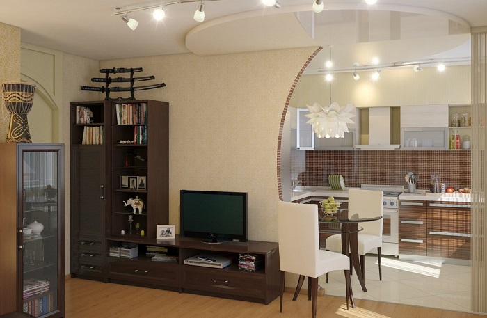 Дверные проемы лучше оставить свободными. / Фото: k-kvadrat.kzВ крохотной квартире важен каждый квадратный сантиметр. Поэтому ваша главная цель – освободить как можно больше пространства, с которым можно будет работать. От чего получится отказаться?• Стены – жители скандинавских стран уже давно привыкли жить практически без стен. И основной причиной является не столько маленькая площадь квартиры, сколько желание сделать помещение более светлым и просторным. Мы советуем взять пример со скандинавов и избавиться от лишних поверхностей. Например, можно объединить кухню с гостиной, если есть такая возможность. В случае с хрущевками, в которых места для готовки практически нет, это решение будет идеальным.• Раздельный санузел – здесь мнение может разделиться. Если вы привыкли к такой планировке и наличие двух отдельных комнат для вас жизненно необходимо, то можно оставить как есть. Но если у вас маленькая семья и жена не проводит по несколько часов в ванной, то вполне можно объединить туалет с ванной и выиграть дополнительные квадратные метры. Еще один способ увеличить количество свободной площади – заменить ванную на душевую кабину.