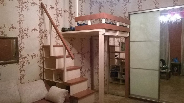 Отличное решение для маленькой квартиры - антресольная кровать. / Фото: spb.masterdel.ruПри ремонте и оформлении квартиры многие забывают о том, кроме плоскости существует и третье измерение – высота. Как правильно ее использовать?• Установив антресольную кровать, можно под ней организовать рабочее место, или использовать пространство в качестве гардеробной.• Если вы не готовы каждый день взбираться на второй уровень, обратите внимание на подиумные конструкции. Зачастую они становятся не только отличным вариантом зонирования, но и дополнительным местом хранения вещей.• Не стоит забывать об ассортименте конструкций-трансформеров, которые могут откидываться от стен, превращаясь в стулья или столы. Такое решение прекрасно экономит место.