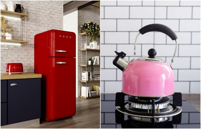 Акцентом может стать как крупная, так и мелкая бытовая техникаДля крохотной кухни обычно выбирают нейтральную цветовую гамму, чтобы сделать ее визуально больше. Но это совсем не значит, что нужно оформлять ее в стиле тотального бежевого или белого. Акценты тоже необходимы, без них кухня автоматически становится слишком скучной и плоской. В качестве них может выступить бытовая техника. По словам дизайнера Галины Березкиной, это отличный вариант для кухни, выполненной в нейтральной палитре оттенков.Например, если помещение светло-серое или белое, можно приобрести желтый, зеленый, красный или оранжевый чайник, тостер либо блендер, если они всегда стоят на виду. Отличным акцентом станет и более габаритная техника: «Одним из наших проектов была абсолютно белая кухня в скандинавском стиле, в которой мы приняли решение разместить ярко-желтый холодильник. Ожидаемо он начал притягивать к себе взгляды не только хозяев, но и гостей, а еще холодильник стал источником хорошего и солнечного настроения, которые не зависело от погоды за окном», – рассказала Березкина.