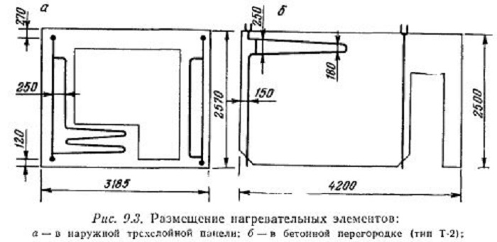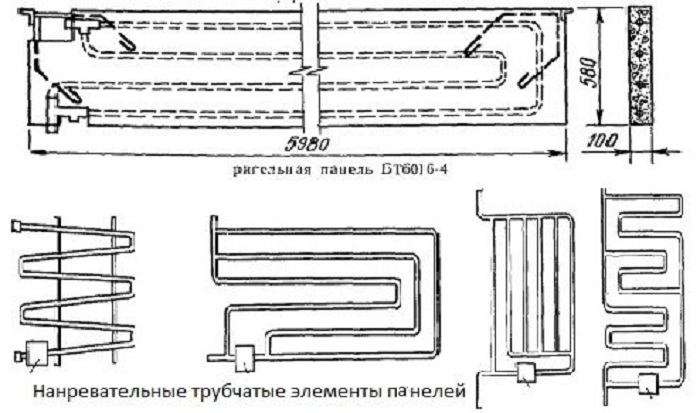 Схема нагревательных элементов. | Фото: bogiremonta.ru.Так вот, одной из идей, которая могла бы ускорить темпы возведения домов, стало внутристенное отопление. Ведь его можно было делать еще на стадии заливки железобетонных конструкций. Сотрудники разных НИИ наперебой предлагали варианты оптимизации энергоэффективности отопительной системы. Одни настаивали на проектировании труб в фасадных блоках, другие считали, что лучше прокладывать батареи в межкомнатных перегородках. Такой способ отопления применялся в домах серий 1605, 464,1-515,121,91