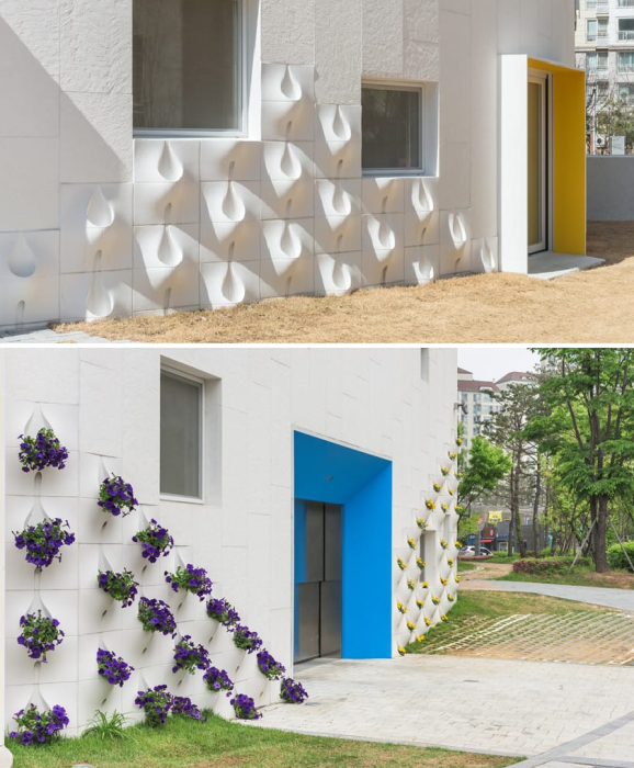 Современные городские реалии настолько отрывают людей от природы и земли, что утонченные натуры начинают искать выход из бетонного заточения. Например, южнокорейскому архитектору Jungmin South пришла в голову оригинальная идея украсить стены панелями, в которых уже встроены... цветочные горшки. В них можно выращивать траву, цветы, даже зелень для салатов. Разработка настолько органично вписалась в архитектуру нового городского квартала, что ее признали настоящим прорывом в озеленении мегаполисов. Теперь каждый желающий сможет украшать свой дом висячими «садами».