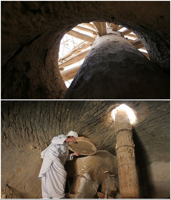 Как выглядит ветряная мельница изнутри (Nashtifan, Иран). | Фото: silksifandrahil.tumblr.com/ historicaliran.blogspot.com.Этот город, расположенный в южной части провинции Хорасан-Резави, издревле славился сильными ветрами, достигающими в непогоду 120 км/ч, так что не стал удивлением тот факт, что древние персы его называли – «Nish Toofan» или «штормовое жало» и научились использовать дармовую энергию. В данном регионе ветряки использовались в промышленных масштабах. На данный момент в Наштифан сохранилось 30 ветряных объектов, возраст которых составляет 1500 лет(!). Примечательно, что в этом городе ветряные мельницы расположены не хаотично, а в одном месте, создавая настоящий комплекс, который работает до сих пор.