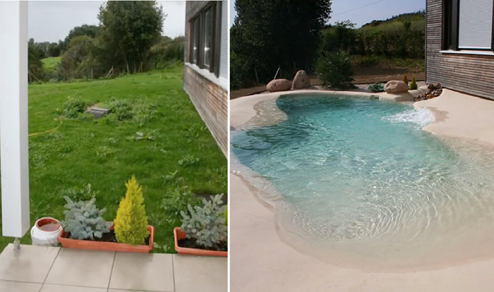 На любом участке земли можно организовать собственный пляж. | Фото: mymodernmet.com.И что самое главное, компания сможет создать бассейн с любым дизайном, сразу с несколькими уровнями глубины, с различными формами и размерами, в зависимости от имеющегося участка.Прекрасное место отдыха в собственном дворе можно сделать самостоятельно, стоит только загореться идеей и продумать все до мелочей. Как это сделал британский строитель, который потратил целых два года на создание настоящего тропического сада, чтобы иметь возможность отдыхать в своем райском месте когда угодно, а не только во время кратковременного отпуска.