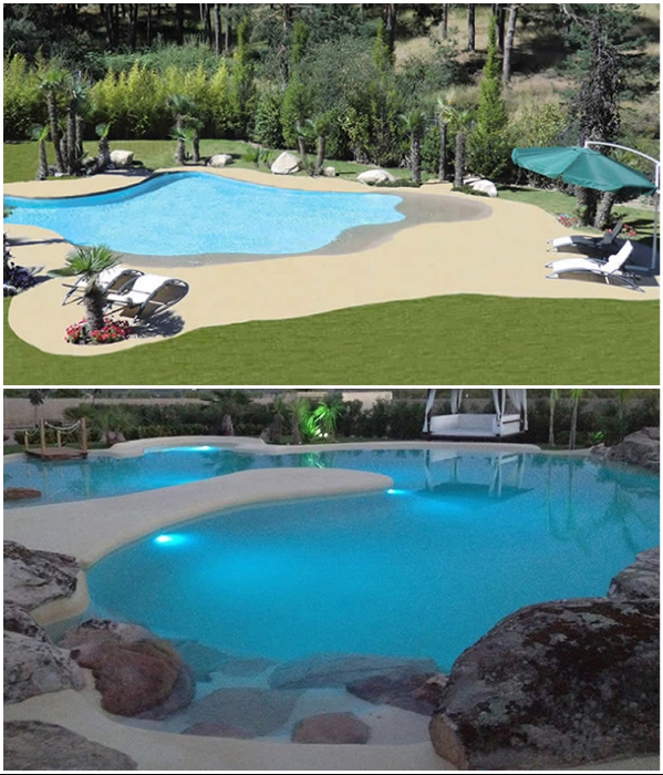 Кто из нас не мечтает о возможность понежиться на песчаном пляже в любое удобное время? Поскольку не всем так фантастически повезло, чтобы иметь под боком морской берег, испанская компания Piscinas de Arena NaturSand предлагает перенести красоту пляжа практически в любой двор. Специалисты обещают превратить существующий бассейн в песчаный оазис прямо у порога вашего дома, который в течение месяца станет настоящим тропическим раем. А если такового не имеется, то создадут его сами, причем любой конфигурации и глубины.