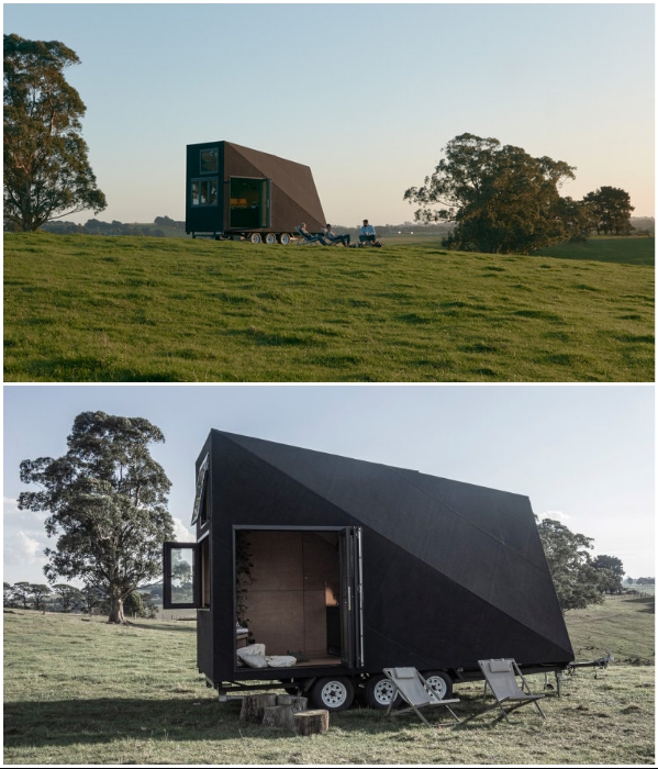 Странной формы дом на колесах появился в Австралии («Base Cabin», Мельбурн). | Фото: fundesign.tv/ arquine.com.