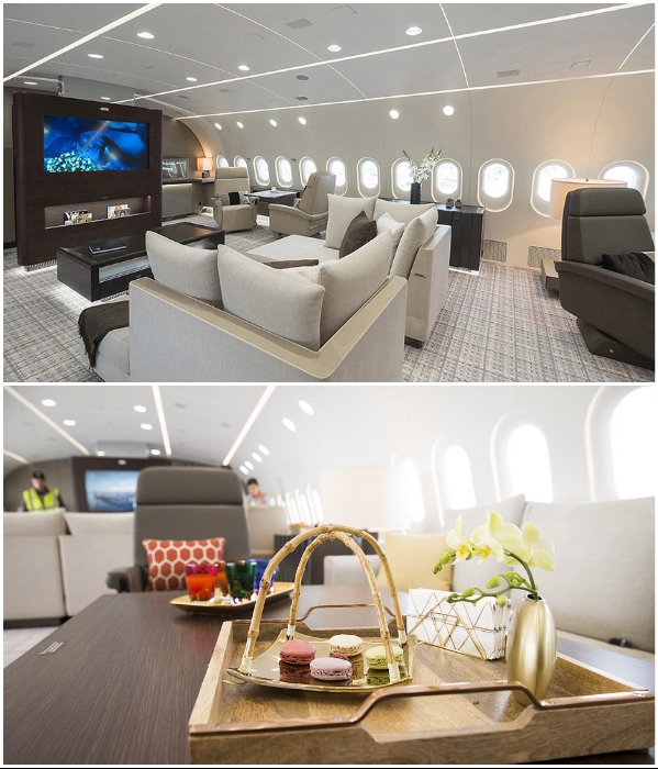 Сейчас уже никого не удивишь роскошными виллами, особняками и целыми дворцами, но авиалайнеры, в которых обустроены настоящие пентхаусы, встречаются довольно редко. Хотя есть и такие летательные аппараты, ведь богатые мира сего ценят не только роскошь, но и каждую минуту, чтобы не тратить их на путешествие наземным транспортом. На данный момент самым крутым частным самолетом, имеющим статус VVIP, является обычный с виду Boeing 787 Dreamliner, заглянув в который сразу понимаешь, каким обманчивым бывает первое впечатление.
