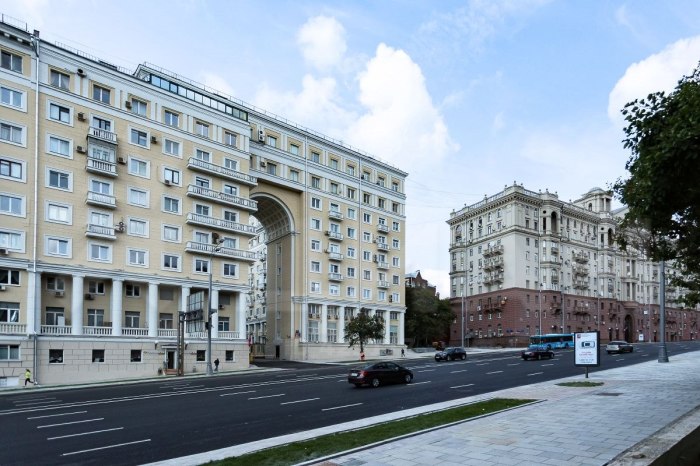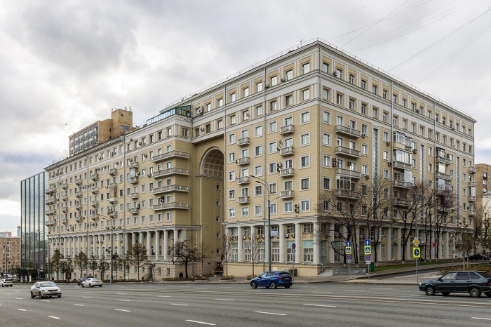 Постройка дома датируется 1936 годом / Фото: mirkvartir.ruСупруги-архитекторы достаточно часто работали над совместными проектами. Один из них – Большой читальный зал, который находится в Библиотеке им. Ленина. Есть и другие здания в Москве, спроектированные Зоей Брод и Александром Хряковым. Что касается описываемого дома с высокой аркой, то он возник на Земляном валу в 1934 г., но в некоторых источниках постройка датируется 1936 г. вполне вероятно, что именно второй вариант правильный, так как Хряков переехал из Ленинграда в столицу лишь в 1933 году.