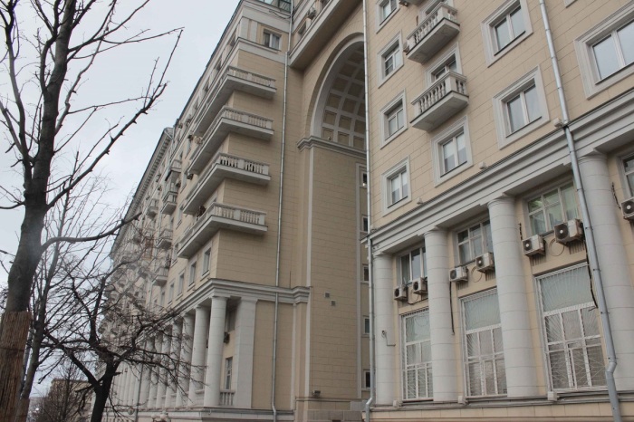 Возведение второй части здания было возобновлено только в послевоенные годы / Фото: domofoto.ruКогда в 1941 году началась война, все работы по строительству дома были остановлены на неопределенное время. Принялись за него только в пятидесятых годах прошлого столетия. Строительство второй части здания осуществлялось по уже имеющемуся проекту. Декор тоже был точно таким, как и в довоенной конструкции. В связи с этим сооружение имеет вид целостного здания. Но различия были. Заключались они в том, что во второй половине дома уже строились двухкомнатные и однокомнатные квартиры, в жилье на пять комнат было полностью исключено.