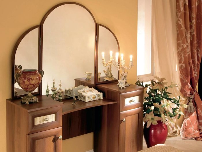 Кто будет протирать тут пыль раз в три дня? У вас есть горничная? / Фото: matras-city.ruВечер перестанет быть томным, как только вы зайдёте в спальню, в которой предметов мебели больше, чем томных мыслей в вашей голове. Почетное первое место в топе ненужных в спальне предметов занимает трельяж с высоким зеркалом. Возможно, некоторые пафосные дамы любят этот предмет интерьера, поскольку на нем можно не менее пафосно расставить многочисленные флакончики с духами, декоративную гигиеническую косметику и т.п. Но давайте подумаем: а есть ли время на то, чтобы вытирать пыль с трельяжа и всей этой косметики? Ведь совсем недалеко находится оживленное шоссе, а горничная есть далеко не у многих жителей пространства СНГ. Помимо наличия большого количества пыли, есть и ещё один эпик фейл. Высокое зеркало трельяжа абсолютно не функционально для нанесения той же туши для ресниц обычной дамой из постсоветской страны, живущей в квартире. Все равно придется брать маленькой зеркало, подносить его близко к лицу и наносить тушь, подводку, тени. Думаю, сейчас каждая дама, наносящая макияж ежедневно, поймёт, к чему мы клоним. Трельяж в спальне перегрузит интерьер и… докажет свою полную ненадобность.