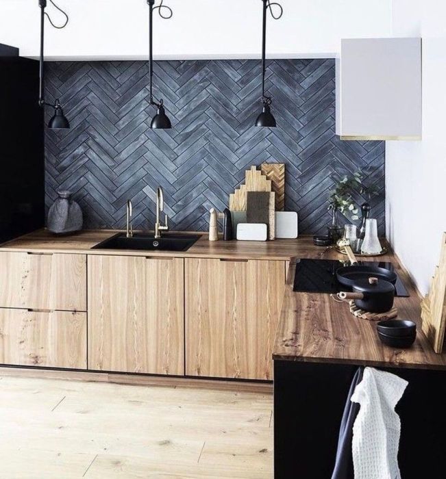 Длинная кухня обычно имеет ощущение слишком линейной планировки. Здесь важно найти баланс цвета и формы. Лучше, если интерьер будет максимально светлым, но с одним темным акцентом, который будет расположен на уровне 1–1,5 метра (столешница, фартук и т.п.). Тогда отделка будет казаться контрастной, стильной, но не массивной.Также очень важно иметь представление о том, какой высоты будет ваш гарнитур. Лучше всего работают варианты с очень узкими (неглубокими) верхними шкафчиками и тоже узкой (неглубокой) столешницей нижней части гарнитура. Отлично смотрятся и кухни без шкафчиков наверху, только с полочками.