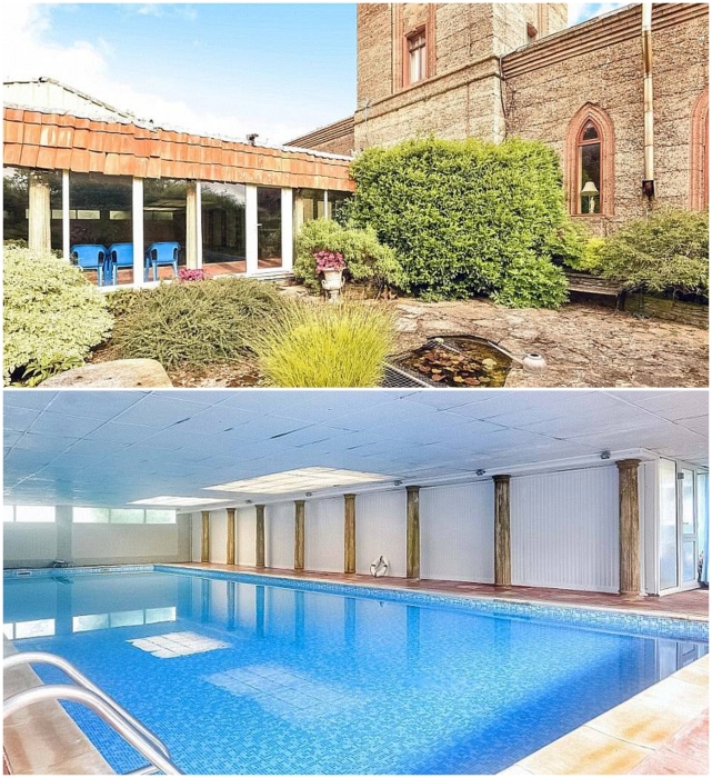 Новый владелец будет иметь возможность окунуться в голубую водичку крытого бассейна («Sway Tower», Великобритания). | Фото: dailymail.co.uk/ newforest-online.co.uk.В помещении, расположенном рядом с башней-резиденцией, в середине прошлого века был сделан 18-ти метровый крытый бассейн с подогреваемой водой. Рядом с пристройкой обстроили теннисный корт, окруженный прекрасным садом (в те времена, когда башня использовалась как отель). И это, не считая хозпостроек и гаража, рассчитанного на два автомобиля.