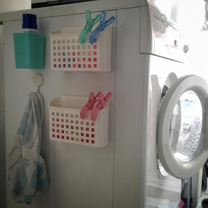 Контейнеры на боковой стене стиральной машины. / Фото: ivd.ruБоковые стенки мебели и стиральной машины тоже являются весьма ценным пространством. Вы можете закрепить на них крючки, держатель для фена, небольшое полочки (в этом вопросе на помощь придет двухсторонний скотч). Здесь отлично будет себя чувствовать полотенце для рук, косметика, расческа и пр.Что касается оформления комнаты, то советы вы найдете в статье Дизайн для маленькой ванной: 16 оригинальных идей