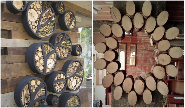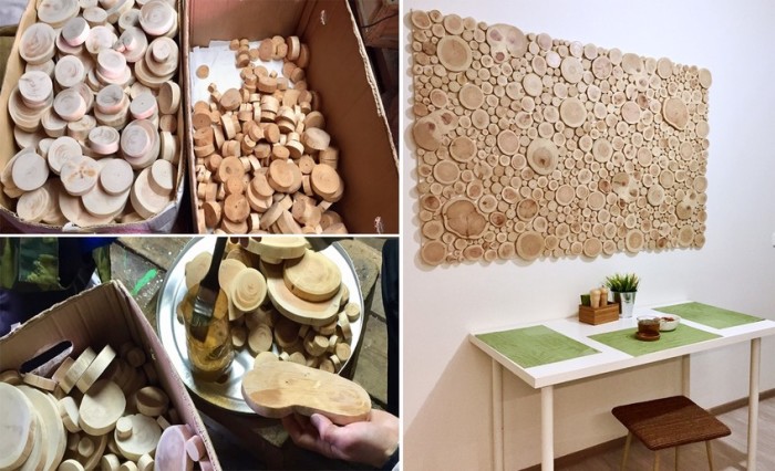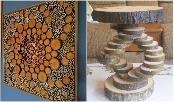 Сложные панно и необычная мебель из срезов дерева украсят любой современный интерьер. | Фото: m-strana.ru/ pinterest.ru.Для этого стоит лишь проявить фантазию, приложить силы, потратив не так много времени, и на выходе получить красивейшие, экологически чистые декоративные элементы, которые станут достойным украшением дома.