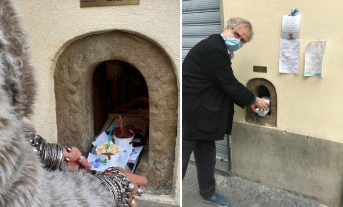 В Италии возобновили давнюю традицию подачи напитков через «buchette del vino». | Фото: interestingengineering.com.Давно позабытые «buchette del vino» («винные окошки») снова можно увидеть открытыми во Флоренции. В связи с пандемией COVID–19 предприимчивые рестораторы и владельцы баров, кафе и магазинов вспомнили о средневековых архитектурных ухищрениях своих предшественников, которые всеми силами пытались сохранить свой бизнес. Современные реалии мало чем отличаются от давних трагических событий, поэтому они и вдохновились подобными решениями, поддерживая дух старинного города в такой необычный способ.