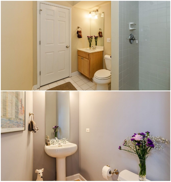 Две остальные ванные комнаты расположены в узкой части дома, на каждом из этажей («Pie house», Дирфилд). | Фото: odditycentral.com/ lemurov.net.В ванных комнатах, которых в «тощем» доме есть целых три, преобладают те же тона, что и в дизайне основных жилых зон. Единственное, что здесь установлено очень много светильников и большие зеркала, чтобы яркое освещение помогло зрительно увеличить пространство тех комнат, которые оказались в узкой части сооружения.Подобные строения можно увидеть и в других городах по всему миру. С один таким «тощим домом»,