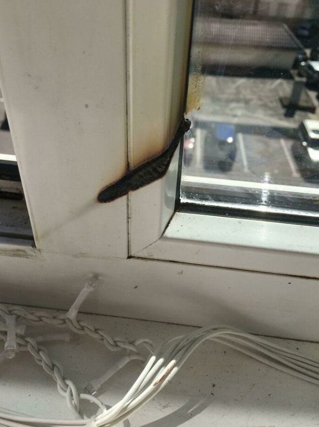 Ещё один пример, как косметическое зеркало прожгло уже раму окна