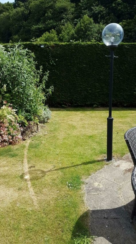 Уличный светильник со стеклянным плафоном-шаром может запросто отразить лучи солнца в жаркую погоду и поджечь траву (и не только)