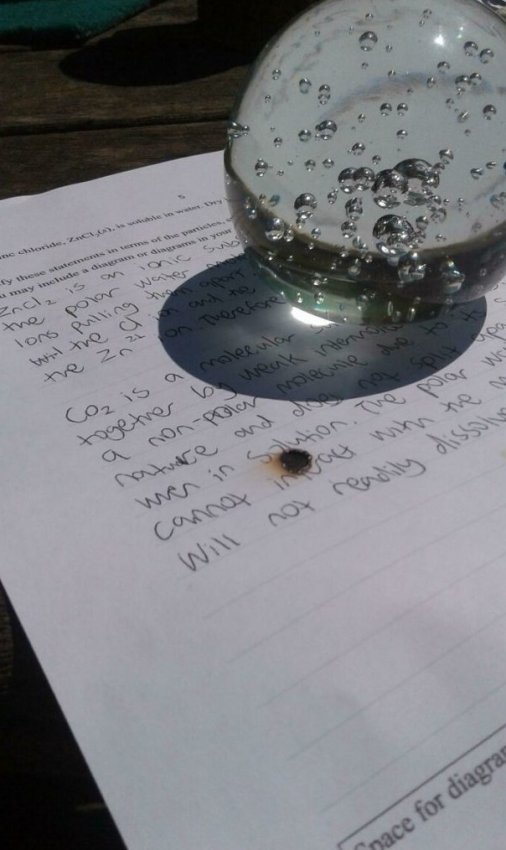 Ещё один реальный пример того, как магический кристалл прожёг дыру. Пока что на тетради