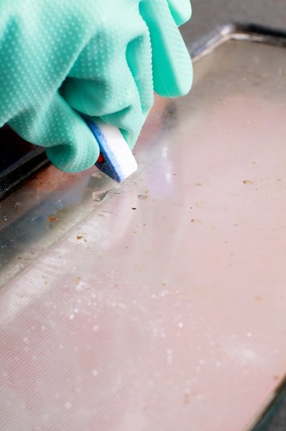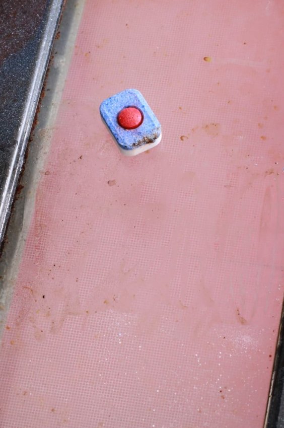 Дверца духовки — место, которое очень легко загрязняется, но при этом невероятно трудно очищается. Порой приходится тратить несколько часов и использовать дорогие и агрессивные химические средства, чтобы отмыть дверцу от жира и прочих загрязнений. Но, зная одно секретное средство, справиться с процессом очищения дверцы духового шкафа можно буквально за 10-15 минут. Этим средством является таблетка для посудомоечной машины.