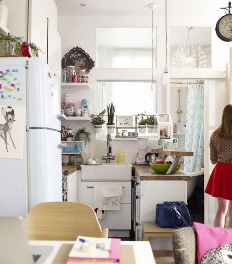 Холодильник — один из самых больших предметов на кухне. Сэкономить много места можно, если выбрать маленький холодильник. Конечно, в него поместится не так много продуктов, но зато на кухне появится свободное пространство.