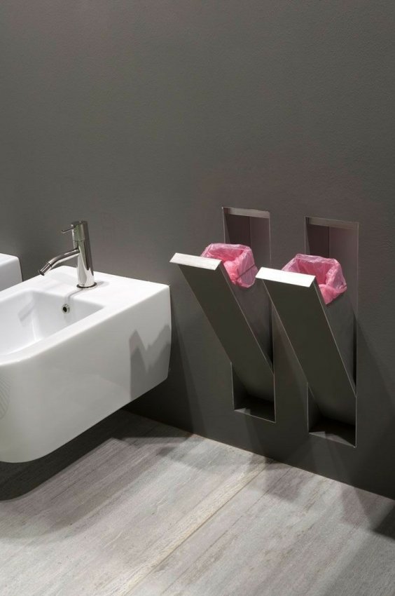Узкие урны, встроенные в стену, не испортят интерьер помещения