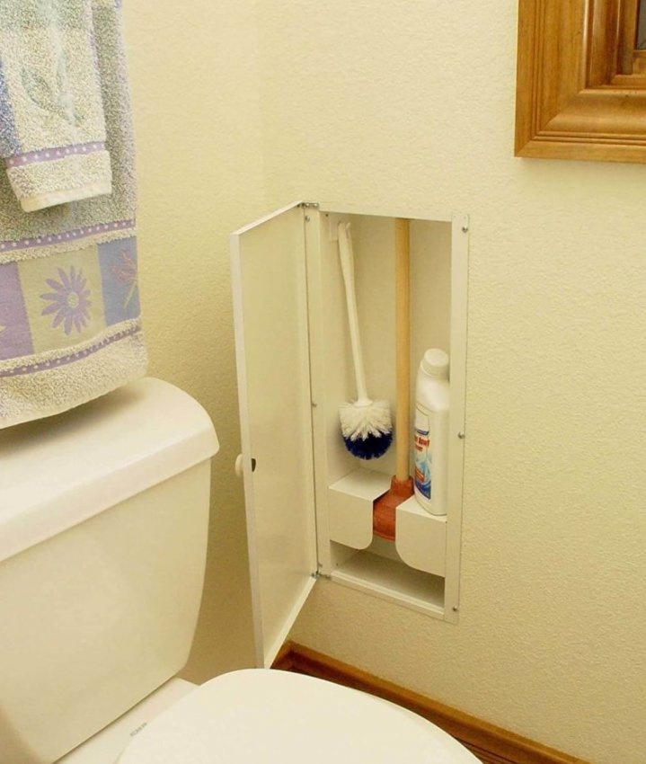 Узкая ниша в стене позволит спрятать ершик и туалетную бумагу