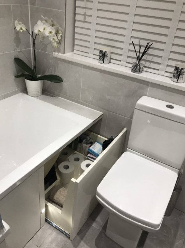 Под ванной можно разместить вместительные выдвижные ящики